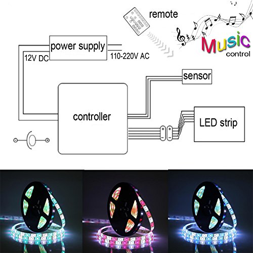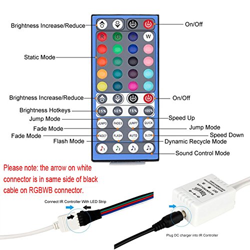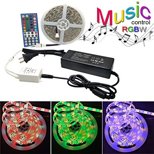 Autai Music Control RGBW Flexible LED Strip Light Lamp Kit 16.4ft SMD 5050 Waterproof 300leds + 44Key IR Remote Controller + Power Supply