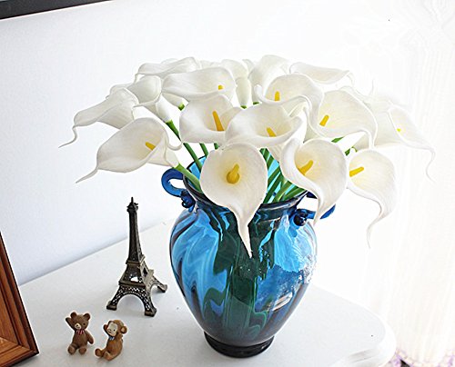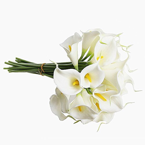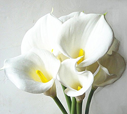 12pcs White Artificial Simulation Calla Lily Flower Bridal Bouquet(Yellow pistil) By Alimitopia