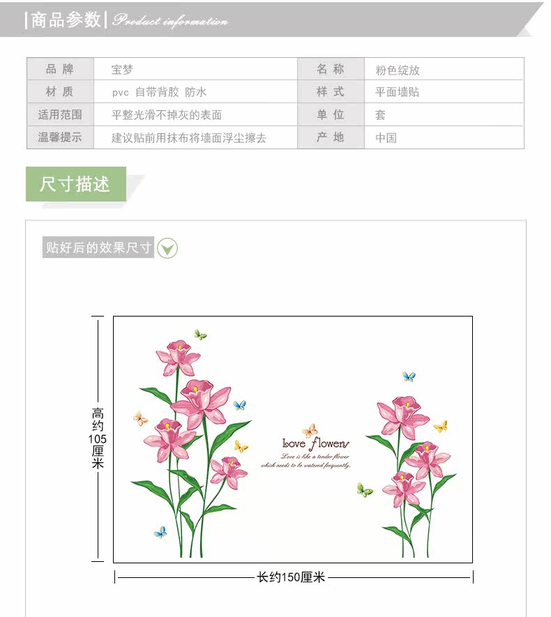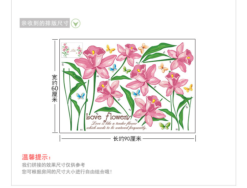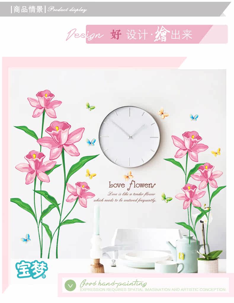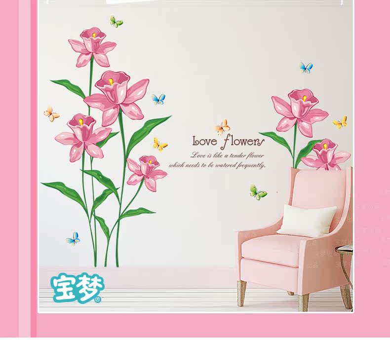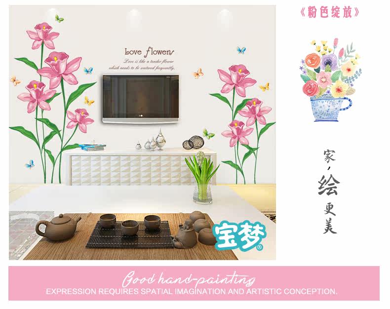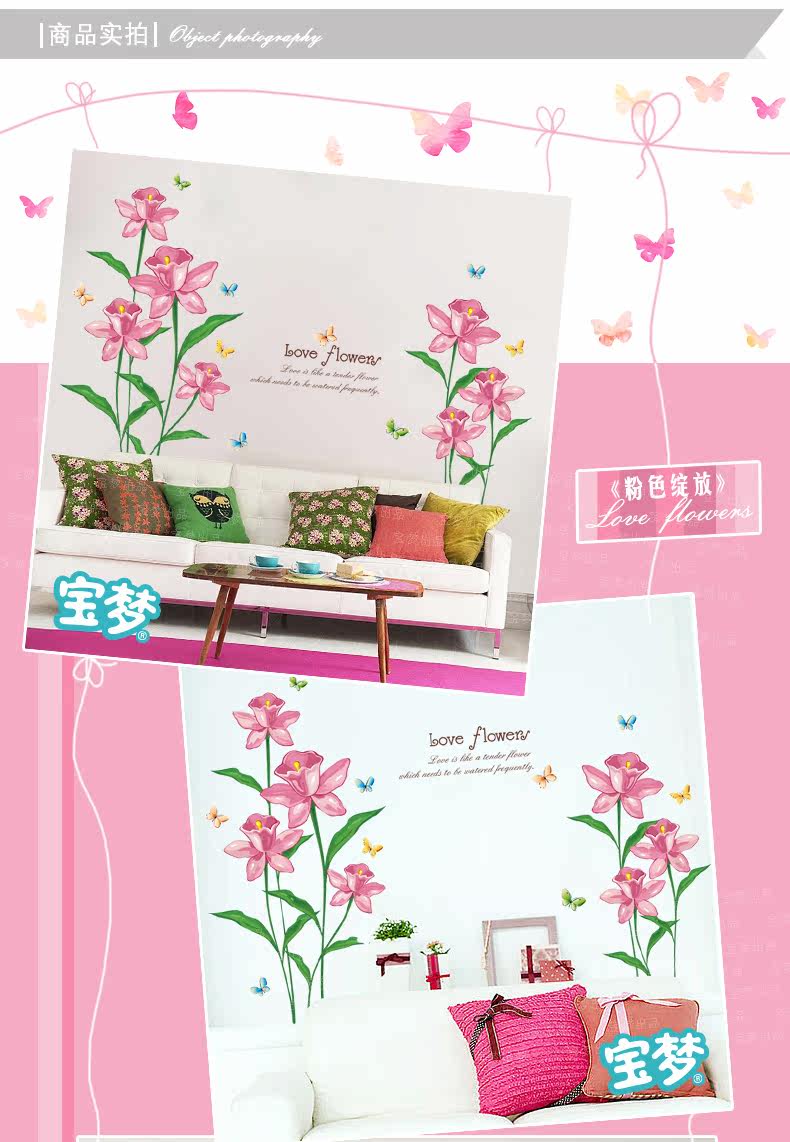 浪漫客厅沙发墙电视墙背景墙贴纸温馨新婚房床头装饰粉色花朵贴画