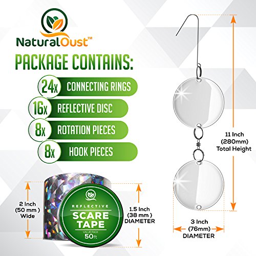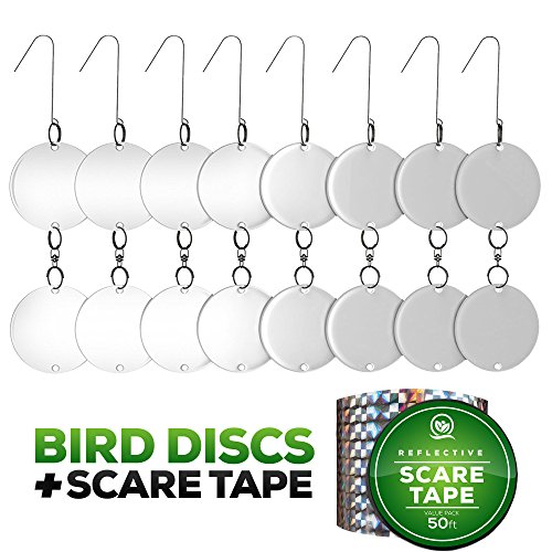 Bird Repellent and Deterrent Discs Set – 16 Discs Set – Effective for Pigeons, Woodpeckers, Sparrows and Most Other Birds - BONUS REPELLENT SCARE TAPE - 50 Feet