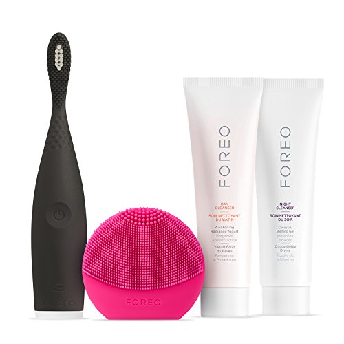 The perfect set to pair glowing skin with a radiant smile, the LUNA play plus uses a compact, battery-powered design to remove 99.5% of dirt and oil, as well as makeup residue and dead skin cells when used with FOREO’s specially formulated Day & Night cleansers. ISSA play promises all the power of Sonic Pulse Technology in a battery-powered device, featuring a hygienic silicone and PBT polymer brush head designed to be gentle on gums and tough on plaque.Feature