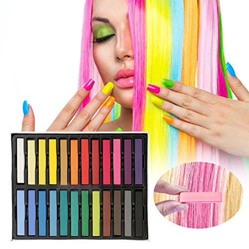 Hair Chalk Set 24 Color Temporary Hair Pastels Rainbow Colored Non-Toxic For Kids Hair Dyeing Party and Cosplay DIY Gifts Present for 4 5 6 7 8 9 10 Years...