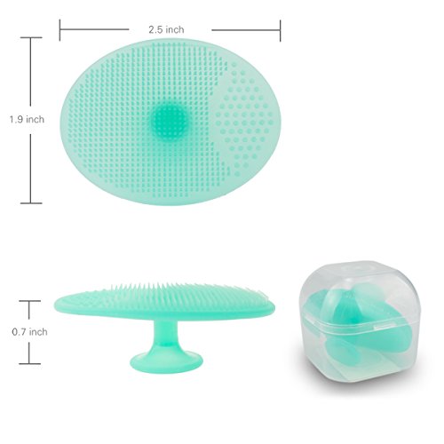 Function Pack of 2 scrubbies for multifunctional use: clean face, clean makeup brushes, clean bristles on makeup brushes. Easy to clean and no worry about bacteria. Food Grade Silicone. Mini, Portable and useful tool to massage and clean your face. Suitable for Baby shampoo bath. Durable and environment-friendly, this facial scrubber will not cause damage to your face. Easily clean the dirt and oil to make your skin exquisite and clear. Features Non-abrasive Food Grade Silicone. Improving the blood circulation of your face by brushing lightly and gently and massage your face. New design with a finger handle, easy to use, no worry to slip down. Small and soft pore massage to make sure it cleans everything. Specification Color: Blue-green Product Thickness: 0.94 inch Product Width: 1.81 inch Product Length: 2.51 inch Handle Length: 0.55 inch Package Contents 2 x Facial Cleaning Pad 1 x Transparent box