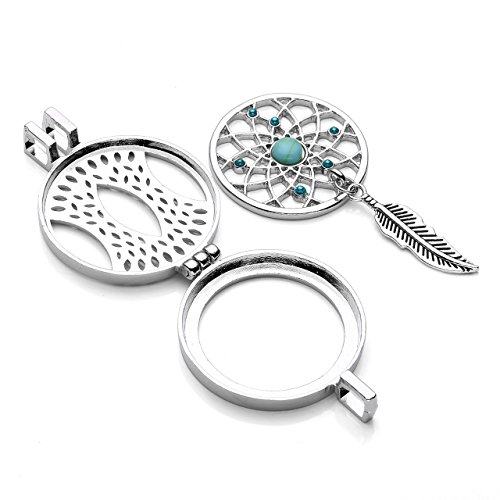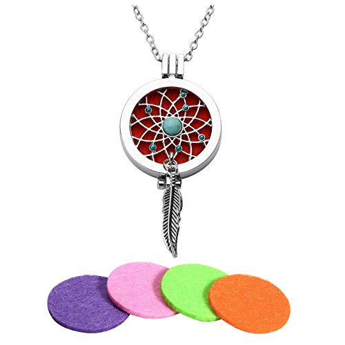 JOVIVI Dreamcatcher Aromatherapy Essential Oils Diffuser Necklace Feather Hollow Locket Pendant + 5 Refill Pads,Valentine's Day Gifts