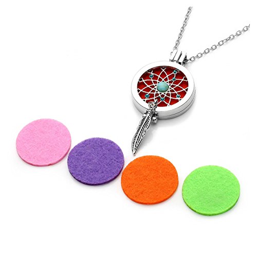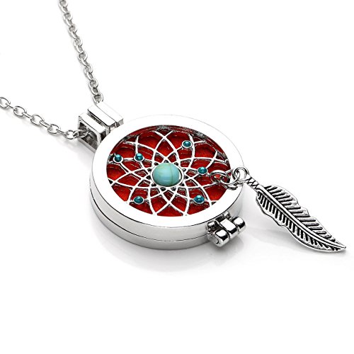 - OUR STUNNING Dreamcather Pendant size:47*34*7mm(1.85"x1.34"x0.28");Feather: 30*7mm; chain length:24.5"(62cm). The aromatherapy oil diffuser necklace is beneficial to health and balanced lifestyle,makes you feel excited and energetic.