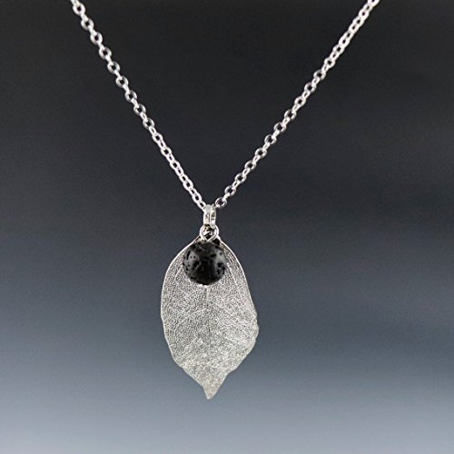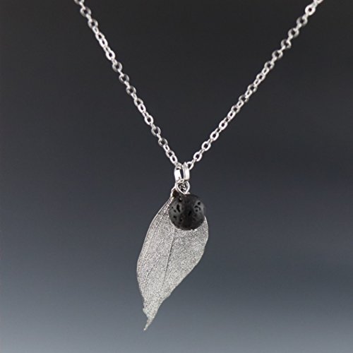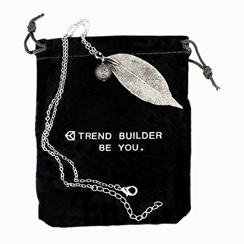 ✔️ YOUR CAPTIVATING GIFT - Only ONE OF A KIND Essential Oil Silver Leaf & Lava Rock necklace on Amazon. Jewelry GIFT pouch included. Ready to give, support and surprise the one you care about the most - including YOURSELF. 💝 If you find any designs as ours it is REPLICA. All of our designs are protected by our trademark, Trend Builder Inc.