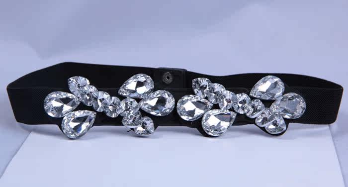 Loving temperament super flash diamond thin elastic waistband crony wild hand-stitched diamond girdle dress belt