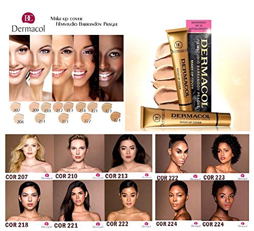 Studio : Dermacol Publisher : Dermacol Binding : Health and Beauty Product Description The clinically tested, extreme covering Make up Cover was created as the first of its kind in Europe and one of the first in the world. The license for this foundation was eventually sold to Hollywood. It contains 50% pigments, which makes it a weapon against skin imperfections. DERMACOL MAKE-UP COVER provides PERFECT COVERAGE even in thin layers and is the perfect corrector for dark under-eye, unpleasant spots and skin blemishes. It completely covers acne, loss of pigmentation, post surgical bruising, tattoos etc. It may be used on the entire face or body for color correction, darkening or lightening the skin tones, and ensuring ideal balance. It is widely used as a professional make-up for photo or film shoots, modeling and for festive occasions. 0