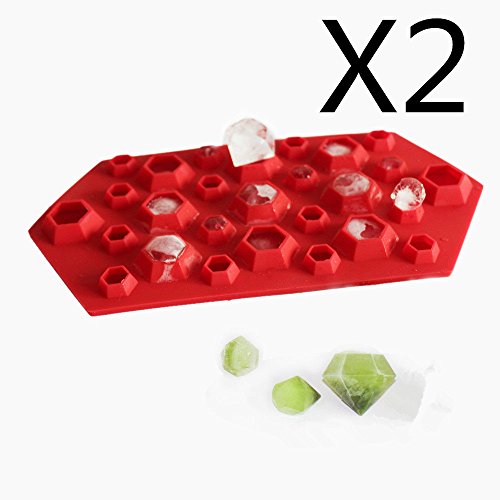 TLT Pack of 2 Silicone 3D Diamonds Gem Shaped Ice Cube Candy Chocolate Mold (Red) MJ011R