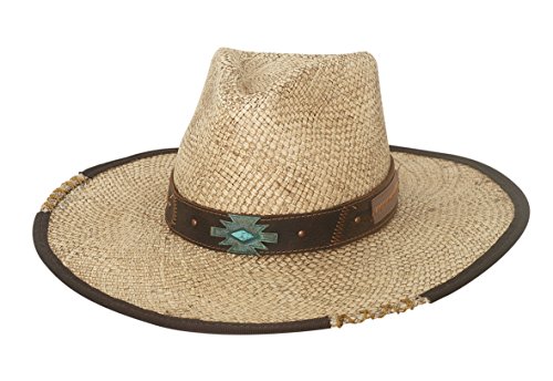 Binding : Apparel Product Description Bullhide by Monte Carlo's No Rules cowboy hat is a fantastic genuine Panama straw hat with a rustic southwestern appearance. Easy going and modern, this wide brim hat has a flat 3 3/4" brim with a bound edge and rope whip-stitching in three spots along the brim. It has a pinchfront crown that is approximately 4 1/2" high. The pieced faux leather textured brim has copper stitching, copper rivets, and a patina copper-toned Aztec concho in front. 0