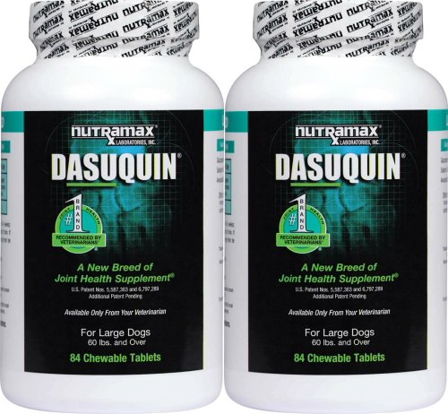 Nutramax Labs has combined over ten years of clinical use and research on Nutramax Lab's joint health supplement Cosequin with their research in advanced joint health ingredients in developing Dasuquin, a cost-effective formulation for dogs. Nutramax Dasuquin Chewable Tablets for Large Dogs 168ct (2 x 84ct) are the exclusive veterinary formulation that contains the potent combination of NMX1000 ASU (avocado/soybean unsaponifiables) and decaffeinated tea with Cosequin's FCHG49 glucosamine hydrochloride and TRH122 low molecular weight chondroitin sulfate to provide the most comprehensive joint health management formula available for dogs.