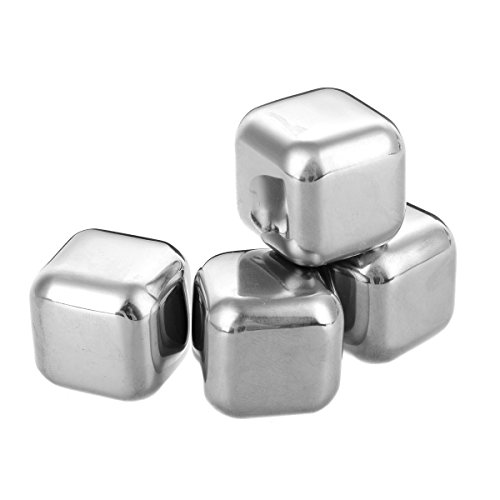 -. Title : SUKRAGRAHA Set of 4 Deluxe Chilling Stones Rocks Reusable Stainless Steel Ice Sphere for Whiskey Wine Beverage Drinks + Portable Bag