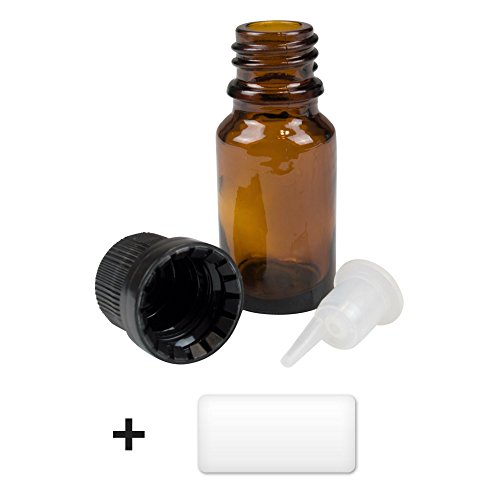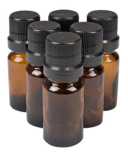 10ml amber bottles for essential oils, with euro dropper orifice reducer and waterproof labels (6 Pack)