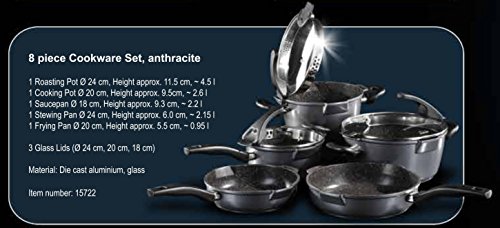 | Product Size | 8" fry pan, 9.6" saute pan, a 2.2 liter sauce pan, a 2.6 liter pot, a 4.5 liter pot |