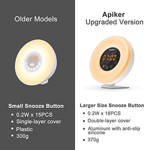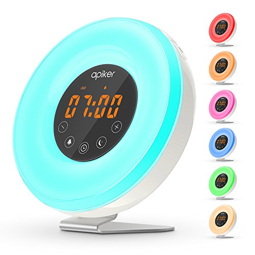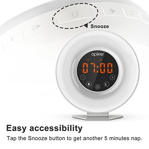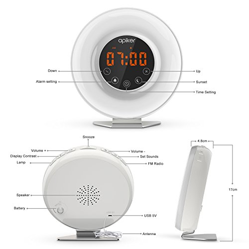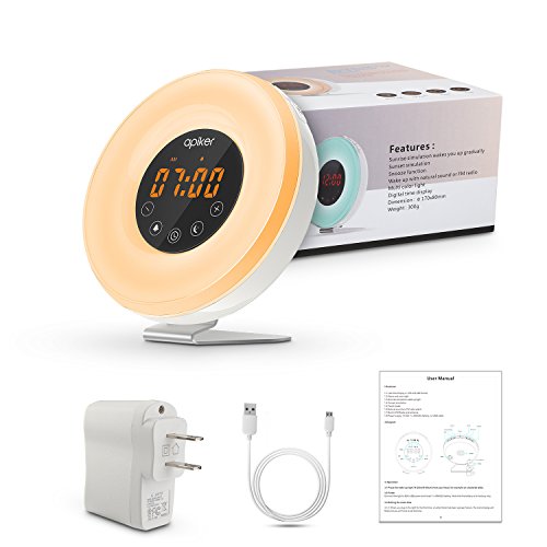 APIKER wake up light alarm clock - A perfect gift for kids, parents, and friends as a birthday present, housewarming gift, or any other occasion. Imagine waking up naturally as the sun rises and falling asleep as the sun sets, you will feel more refreshed to enjoy a new day. This wake-up light not only wakes you up more naturally, but also energizes you in the morning. Stylish design that suits your home decoration anywhere.