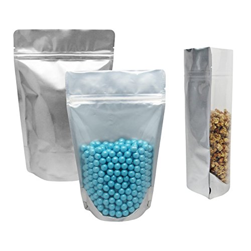BAGS100 Stand-Up Pouches Heat Sealable Zip Bags (10 Count, 8-oz Clear/Silver)