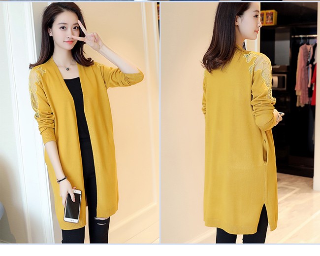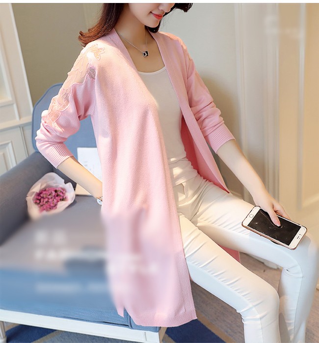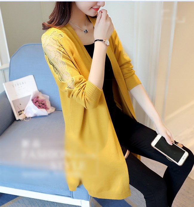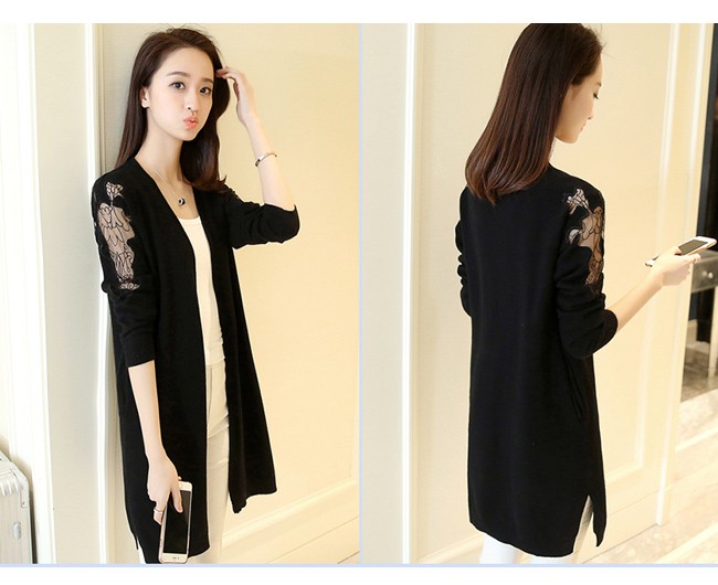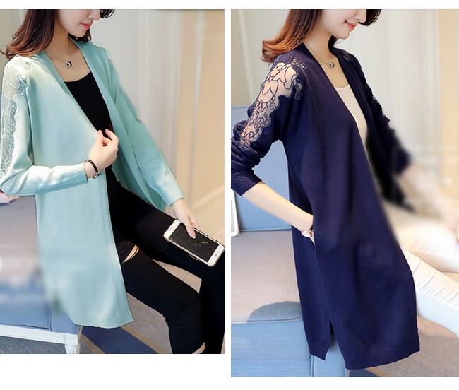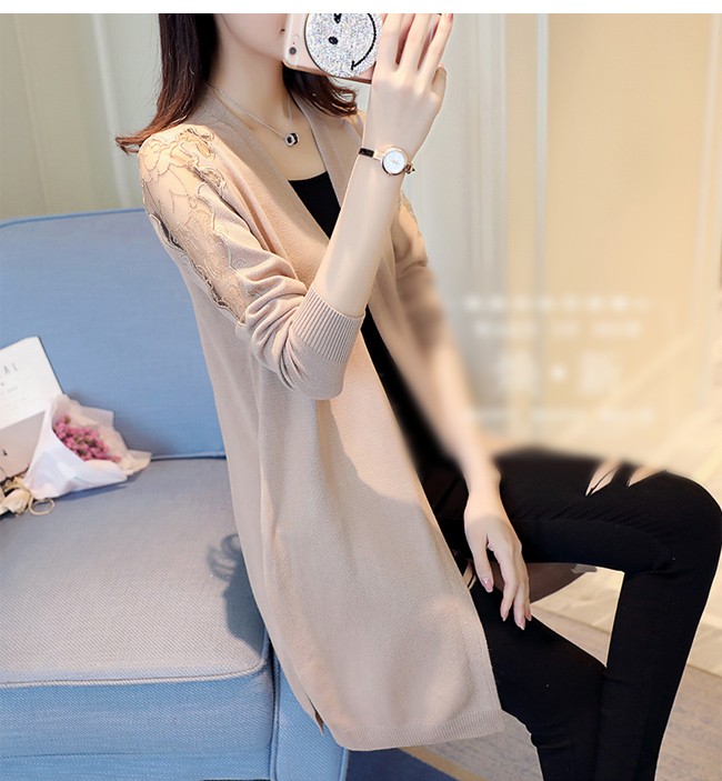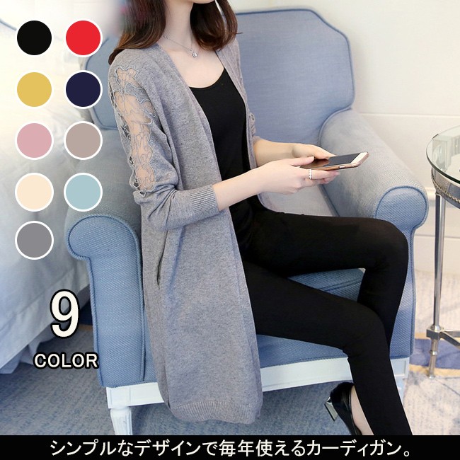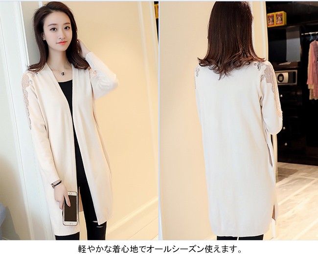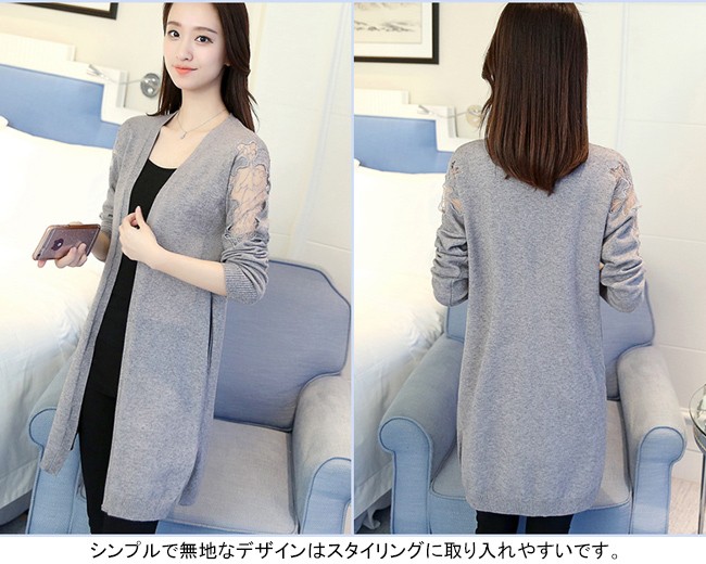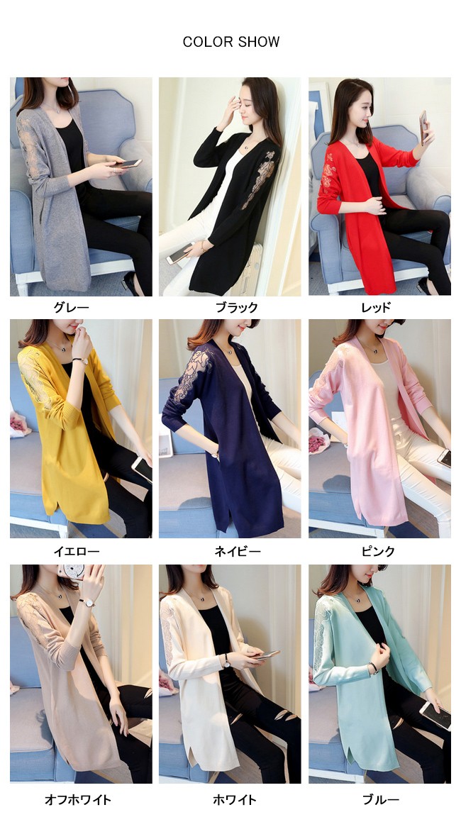 | 商品名 | 肩掛けカーディガン レース切り替えカーディガン ミディアムニット レディース 長袖 無地 ゆったり ニットトップス アウター 薄手 2017秋新作 |