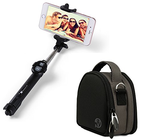 -. Feature : Fine Nylon Material on Camera Case. Top handle lets you carry with comfort. Holds cameras/camcorder and other additional accessories. Padded camera compartment to provide superior protection . Rear pockets allow fast access to accessories: SD Memory Cards, Cables, Charger etc. Adjustable, removable shoulder strap with extra padding / Approximate Exterior Case Dimensions: 4.75" X 4.75" X 2.5" inches. Approximate Camera Compartment Dimensions: 4.25" X 3.6" X 2.0" inches / The selfie stick has 270 degree adjustable head: The mount at the top of the selfie stick can be positioned at any point through a 270 degree arc, allowing you to adjust the position according to the specific shot you are taking. Light and compact, this selfie stick is 7.5 inches long when retracted, and 27.5 inches when fully extended. Extendable and stable selfie stick with ergonomically designed handle. / With a standing tripod stand, you can easily take pictures in longer distance with better freedom of posting. Extendable and stable selfie stick with ergonomically designed handle. Includes a removable Bluetooth remote control and wrist strap / Fits DB Power Action Camera. You will receive the vangoddy camera case and the bluetooth selfie stick with tripod stand.