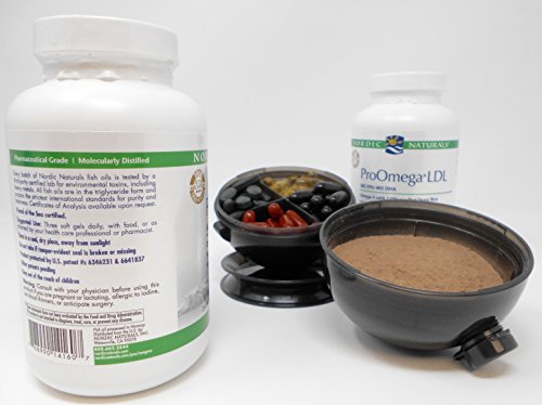 High Concentrate EPA/DHA Formula with Red Yeast Rice and CoQ10 Pharmaceutical Grade† Molecularly Distilled Nordic Naturals ProOmega LDL contains a blend of highly concentrated omega-3 fatty acids, red yeast rice, and CoQ10 to support healthy cholesterol levels.* ProOmega LDL promotes cardiovascular health by supporting the liver's ability to metabolize dietary fat and cholesterol, promoting healthy blood vessel function, and providing antioxidant protection.* †All Nordic Naturals fish oils surpass all pharmaceutical standards for freshness and purity. Every batch is third-party tested, showing no detected levels of heavy metals, dioxins, or PCBs. Viita Ball Premium Supplement Storage Container and Shake Funnel- Great for storing your pills and mixable powders. The funnel construction lets you avoid the mess while dispensing your protein shakes into a water-bottle.Colors will vary.Feature