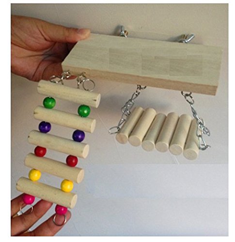 -. Title : 【SDR】 木製 木 小動物 おもちゃ 玩具 アクセサリー 3点セット 鳥 ハムスター ペット ケージ ゲージ カラフル はしご ブランコ 橋 台 吊 ぶら下げ 即発
