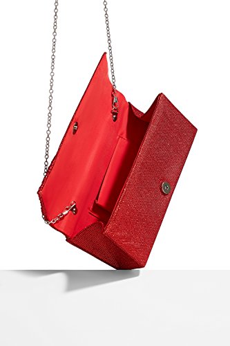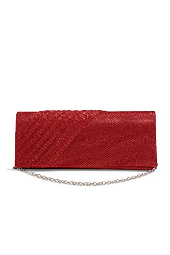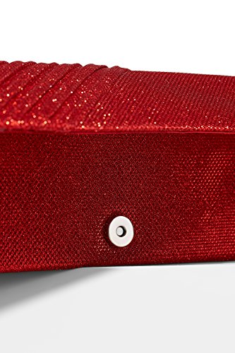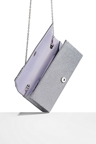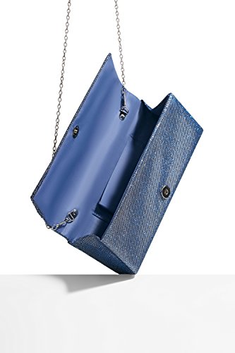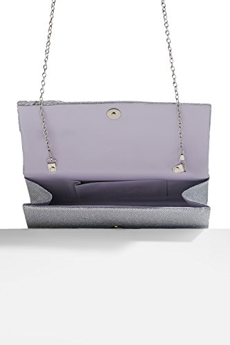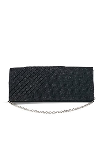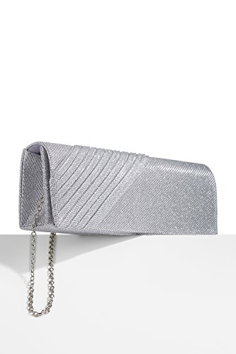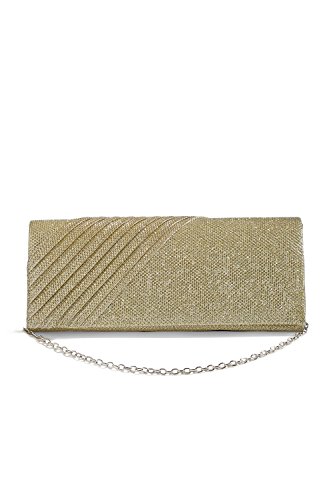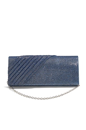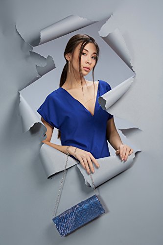 This shining long clutch is a perfect accessory for special occasions where you need something sparkling and chic to complete your evening outfit. The shimmering clutch has a coarse fabric surface and diagonal pleats on one side. A magnetic snap closure allows you to open and close your clutch smoothly and provides extra security for your belongings. The inner lining is crafted from smooth satin fabric. Inside you can also find a tiny pocket for your credit cards or an ID card. This stylish clutch purse comes with a detachable crossbody chain strap. It gives you an option to toss your handbag over the shoulder and free your hands. Otherwise tuck the chain into the wallet and keep it in your hands. All metal parts have high resistance to rust, corrosion, oxidation and tarnishing so your minaudiere clutch will shine as a new one even after years in use. Small and neat by sight the envelope purse is spacious enough to keep your essentials: a cell phone, home and car keys, ID card, credit cards, some money and makeup. As the clutch fits most big screen smartphones, you can take along with you an iPhone 6 Plus, iPhone 7 Plus, Samsung S7 Edge or another gadget of the same or smaller size. 0 |