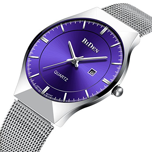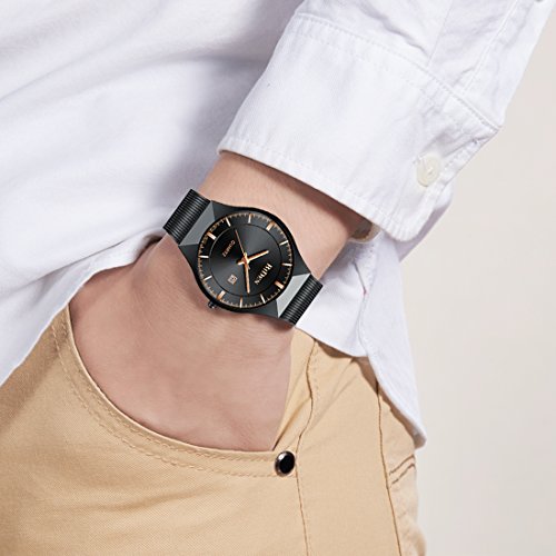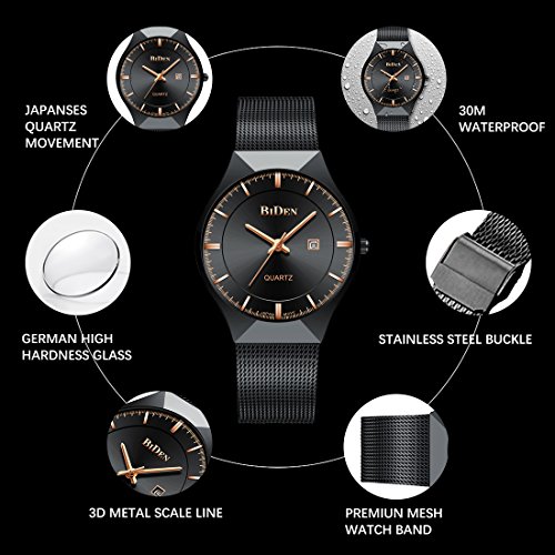 ❤STYLISH DESIGN WATCH FOR DAILY USE: Business and Fashion design; Excellent texture; Date Calendar; Daily waterproof; High quality stainless steel mesh strap; Key Scratch Resistant Watch Face Made of High Hardness Glass; Case Diameter: 37mm; Band Width: 18mm, Band Length: Men's Standard
