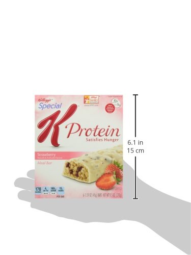 -. Binding : Grocery -. Brand : Special K -. EAN : 0038000291760 -. Feature : 6-count boxes of special k strawberry protein meal Bars, 1.59 oz. / Crispy, crunchy rice and pieces of strawberry-flavored fruit dipped in creamy goodness / 10 grams of protein per bar to curb cravings / 170 calories per bar; 5 grams of fiber / Perfect meal replacement for busy days on the go -. Label : AmazonUs/KEN5R -. Manufacturer : AmazonUs/KEN5R -. NumberOfItems : 1 -. PackageQuantity : 1 -. ProductGroup : Pantry -. ProductTypeName : GROCERY -. Publisher : AmazonUs/KEN5R -. ReleaseDate : 2015-07-16 -. Studio : AmazonUs/KEN5R -. Title : Special K Protein Meal Bar, Strawberry, 6-Count -. UPC : 038000291760