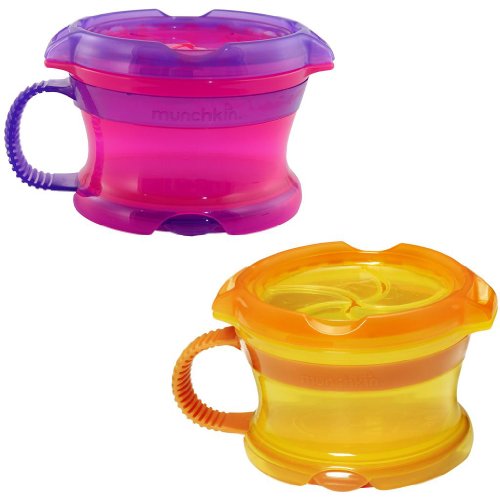 -. Binding : Baby Product -. Brand : Munchkin -. Feature : Two 9 ounce snack cups, ideal for dry solid food / Click Lock snack lid locks in place for a spill proof seal guaranteed / Re sealable cap keeps snacks fresh / Lid tether acts as a toddler handle and pivots underneath the cup when in use / Ideal for dry, solid snacks like crackers and dry cereal -. Label : Munchkin -. Manufacturer : Munchkin -. ProductGroup : Baby Product -. ProductTypeName : BABY_PRODUCT -. Publisher : Munchkin -. Studio : Munchkin -. Title : Munchkin Click Lock 2 Count Deluxe Snack Catcher