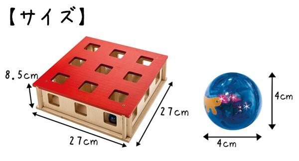 多数の穴が開いた迷路状構造のマジックボックスに光るボール(フラッシングボール)を入れたら、上からも横からも、つかめそうでつかめないボールにネコちゃんが夢中になります。 |