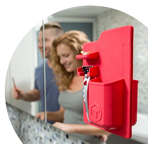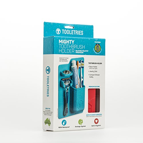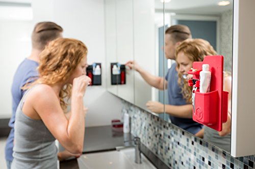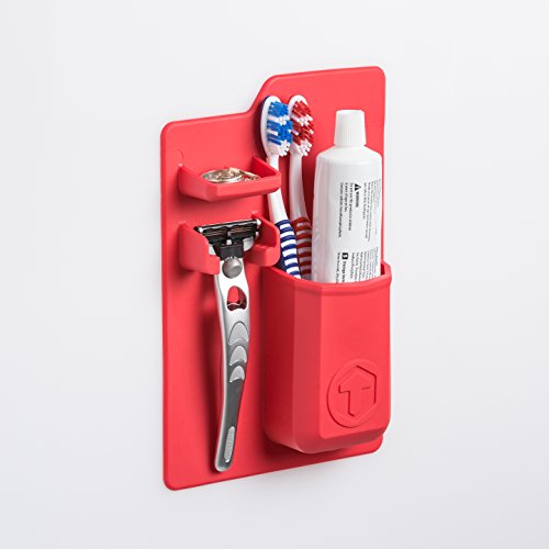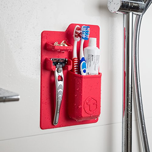TOOLETRIES Mighty Toothbrush Holder - Silicone toothbrush holder for bathroom mirror, shower (Red)