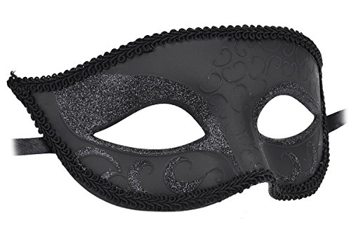 -. Title : Coxeer Black Venetian Mask Sparkle Masquerade Mask Mardi Gras Costume