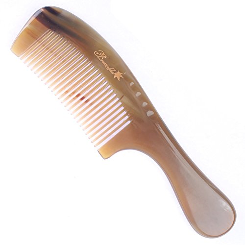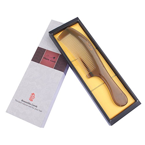 Breezelike No Static 8" Rare Super Big Size Round Handle Tibetan Yak Horn Comb