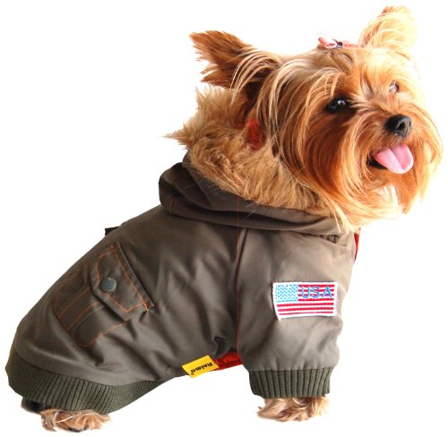 -. Feature : Shiny polyester/cotton blend exterior / Satin over polyester interior / Acrylic fur hood lining / Snap-on button closure / For breed sizes like Boston Terrier, Maltese, Toy Poodle
