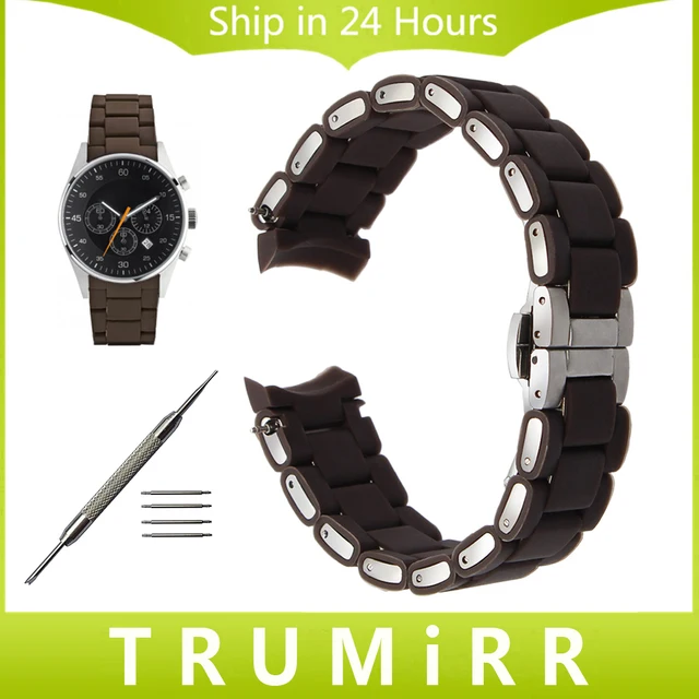 | [해외] 20 미리메터 23 미리메터 실리콘 고무 손목 아르마니 AR5858 AR5868 AR5905 AR5906 남성 여성 시계 밴드 스틸 버클 스트랩 손목 팔찌 |
