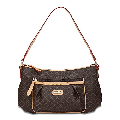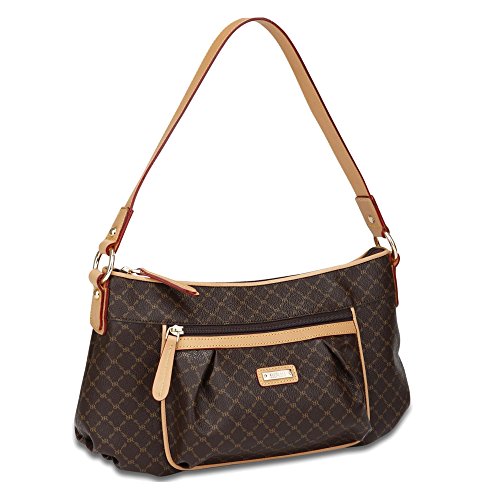 -. Feature : Embossed gold RIONI Moda Italia emblem / Coffee brown fabric RIONI monogram print lining / Shoulder strap is adjustable to ensure fitment is suitable for your needs / Front flap opening entrance, rear zipper pocket and interior contains two pocket pouches / Dimensions: 14" L x 1" W x 6" H - 7.5" Drop Length Strap