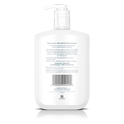 ReleaseDate : 2014-04-27 Studio : Johnson Johnson SLC Publisher : Johnson Johnson SLC Binding : Misc. Product Description Neutrogena Ultra Gentle Daily Cleanser is Dermatologist developed for daily cleansing of sensitive skin, this cleanser uses skin-friendly technology to remove excess oil, dirt, and makeup while protecting skin's natural moisture barrier. This cleanser combines the superior cleansing of Neutrogena technology with the maximum gentleness of a sensitive skin cleanser. With patented technology, this effective yet gentle formula removes excess oil, dirt and even makeup while protecting skin's natural moisture barrier to leave it feeling soft?never too dry, never too tight. And unlike some other gentle or sensitive skin cleansers that can leave behind residue, Ultra Gentle rinses completely clean. 0