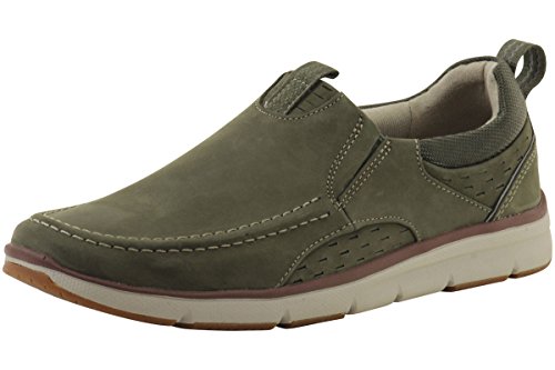Product Description Men's Clarks, Orson Row Slip on Shoes Slide into these comfortable shoes for your next nautical outing Leather and fabric upper Slip on style for an easy on and off Fabric lining Cushioned footbed for added comfort Rock rubber outsole for added traction with the Aqua DX drainage system 0