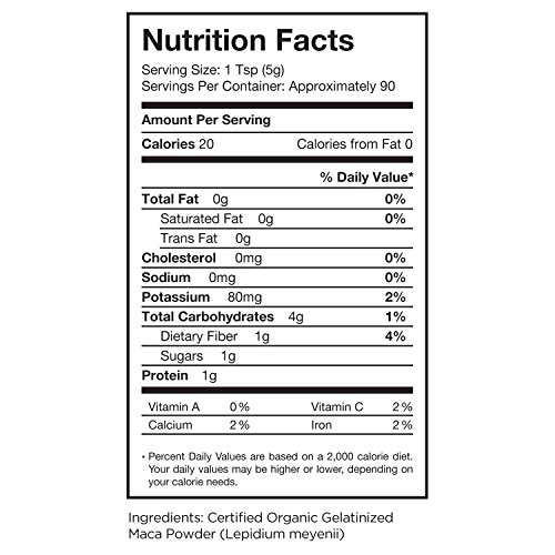 - Feature : Enhanced Bioavailability - Viva Labs' maca powder is gelatinized in order to improve the absorption of this renowned root. Gelatinization ensures indigestible starch is removed by applying low heat to raw maca roots, resulting in a highly absorbable powder that eliminates any digestive discomfort. / Adaptogenic Qualities - maca has been shown to help support healthy hormone levels, enhance vitality and sustain energy levels, naturally. We recommend using 1 teaspoon per day for feelings of tranquility and relaxation. / Promotes Radiant Complexion and Glowing Skin - gelatinized maca is a nutritious source of vitamins, minerals, fatty acids and plant sterols offering a wide range of benefits, particularly helping to improve the look and feel of skin. / Impeccable Versatility - maca can be used to enhance a variety of recipes including smoothies, baked goods as well as savory items. This delectable superfood will enhance the taste and flavor of any modern-day recipe, while increasing the nutritional value of your meals. / Viva Labs Gelatinized Maca is certified organic, non-GMO, gluten-free and vegan-friendly. Try maca today and experience the full benefits of this Peruvian wonder.