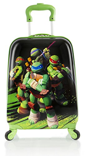 -. Binding : Electronics -. Brand : Ninja Turtles -. Color : Black-Green -. EAN : 0700118158098 -. Feature : Made of ABS/polycarbonate composite. 18" TMNT Ninja Turtles Spinner Rolling Carry On Suitcase makes travel fun for little ones with its awesome artwork of Ninja Turtles / Lightweight and extremely easy to maneuver by kids. Specially designed with 4 - 360° Spinner Wheels / Retractable internal reserved pull handle system designed especially for children. Top handle / Zip closure main compartment. Interior is fully lined and features a zippered divider and restraining straps for internal organization / Measures 18" x 12" x 9". Weight 4.1 lbs. -. Label : Heys America -. Manufacturer : Heys America -. ProductGroup : PC Accessory -. ProductTypeName : CARRYING_CASE_OR_BAG -. Publisher : Heys America -. Studio : Heys America -. Title : Nickelodeon TMNT Ninja Turtles Boy's 18" Hardside Spinner Carry On Lage -. UPC : 700118158098