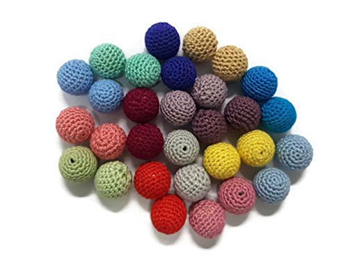 U.D. Let's Make - 30pc/lot Crochet Round Wooden Beads crochet color Mix Ball Knit -22mm for decor wooden Baby teething Necklace,bpa, Lead and...
