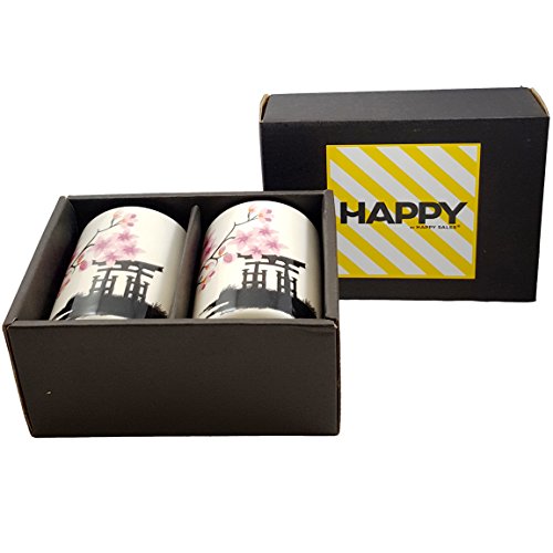 Happy Sales HSCM-TCBWP2, Perfect 2 pc White and Pink Blossom Japanese Teacups Mugs set