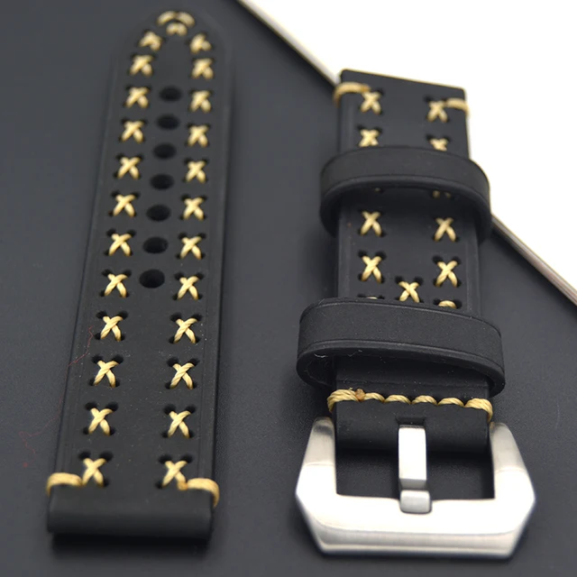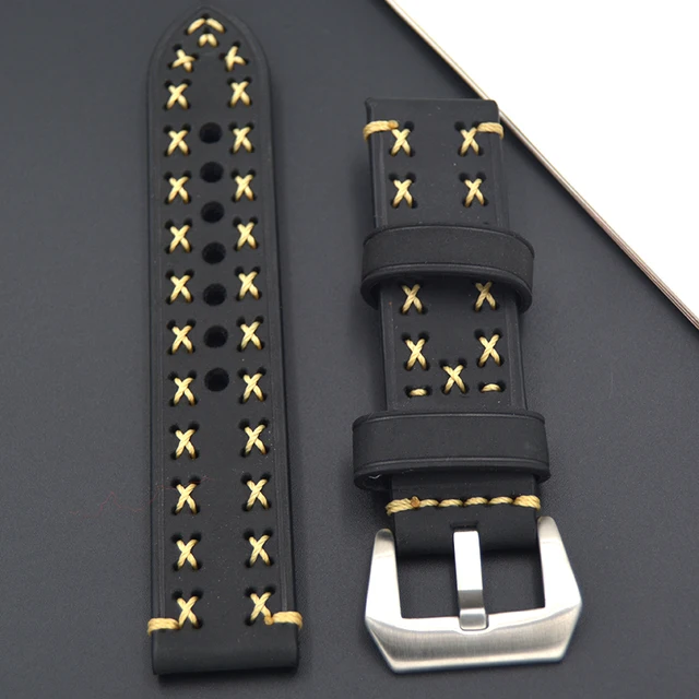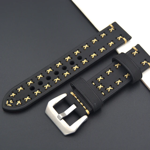 | [해외] 레트로 20 미리메터 22 미리메터 24 미리메터 26 미리메터 가죽 시계 스트랩 시계 밴드 남자 시계 스트랩 블랙 두꺼운 라인 스테인레스 스틸 실버 버클 |