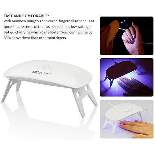 3. Please note that curing time vary based on gel polish brand. Mini 5W nail dryer is for all kinds of gel polishes only, not for regular nail polish. Ensure that your polish is compatible before purchase. For the best results, avoid moving your hand too much until curing is completed.