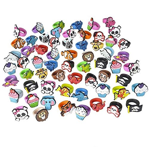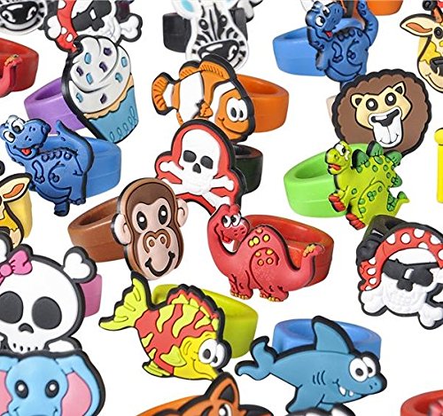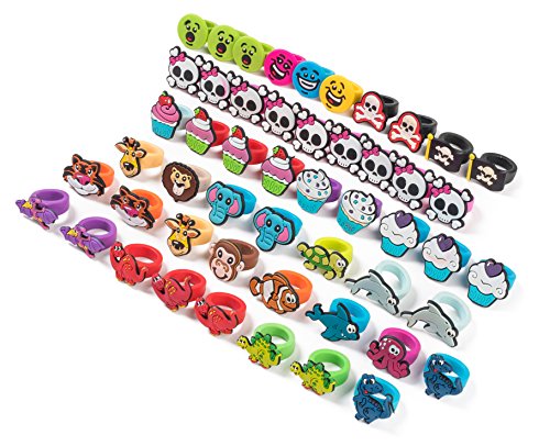 A fun party favor for young fingers. This collection of rubbery rings features a dynamic variety of colors and designs. Kids love to collect and trade them. fun alternatives to Halloween candy for little trick-or-treaters Add some fun and flair to your season grab bags and Christmas stockings!