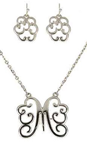 -. Feature : Initial Monogram Silver-tone Necklace Set with Earrings / Necklace Length 16" with Extender 3.5" / Earring Length 1.25" / Wrapped with tissues in a gift box / Each piece is carefully crafted to perfection