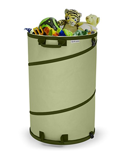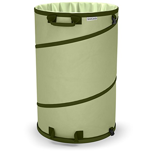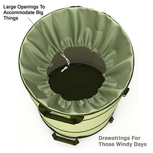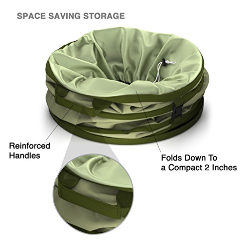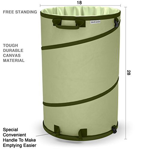 - CONVENIENT COLLAPSIBLE DESIGN | STAYS UP, GOES DOWN EASIER: Free up your hands and get work done twice as quickly. With its patented spring design, this garden bag pops up rigid to a full 28 inches in seconds, and folds down to a compact 2 inches with a simple twist. It can be hung on your garage wall when not in use.