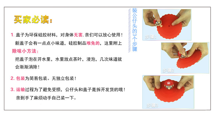 这款是大号直径15厘米的食品级硅胶防尘盖,比一般市面上规格的直径10厘米卖4-6块钱的杯盖要大很多哦,打破了只能盖小杯子的局限性!能盖住口径在14厘米以下的大款杯子,也能盖住我们平时吃饭用的饭碗(直径14厘米以下),有效的防尘,盛好食物的饭碗放在冰箱里时可以用此杯盖改好防止窜味儿,可以说是一盖多用呀~喜欢的亲,赶紧下手~现在是活动价哦