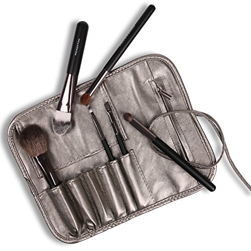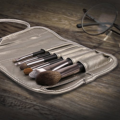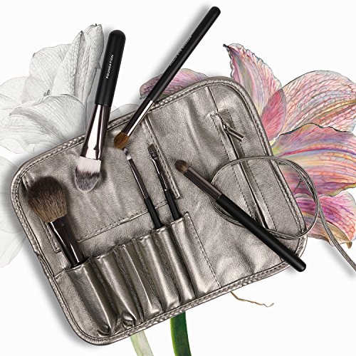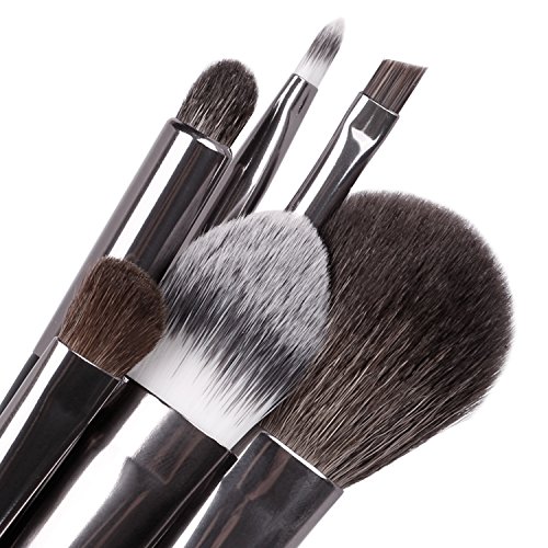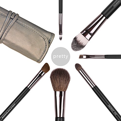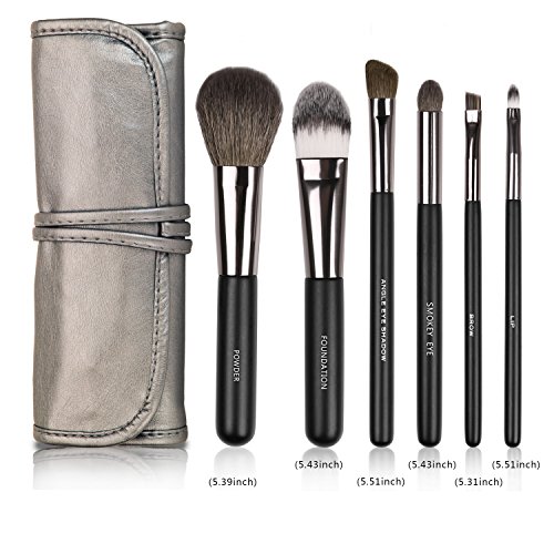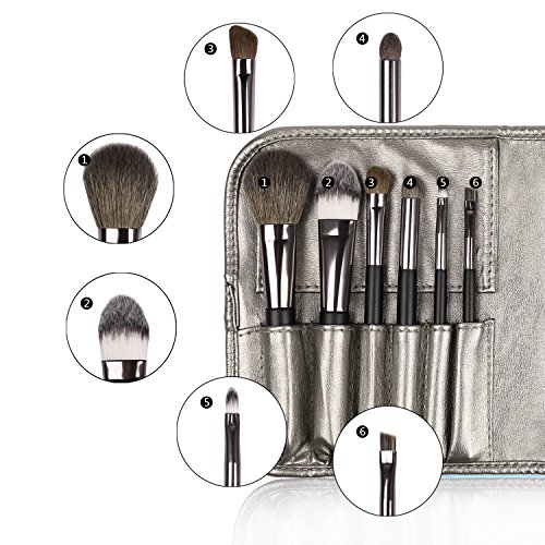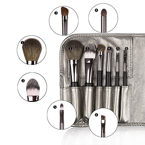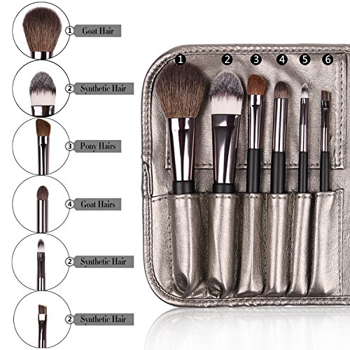 PACKAGE INCIUDES 1* Powder brush (5.39 inch)-Goat Hairs 1* Foundation brush (5.43 inch)-Synthetic Hairs 1* Eyeshadow brush (5.51 inch)-Pony Hairs 1* Smokey eye brush (5.43 inch)-Goat Hairs 1* Eyebrow brush (5.31 inch)-Synthetic Hairs 1* Lip brush (5.51 inch)-Synthetic Hairs 1* Delicate Case