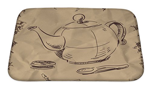 Gear New No Slip Microfiber Memory Foam Kettle Spoon & Biscuit Icon Isolated on Vintage Hand Drawing Sketch Illustration Bath Rug Mat, 24" X 17"