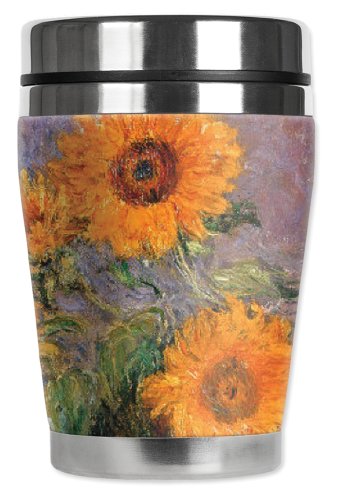 -. Binding : Kitchen -. Brand : Mugzie -. Color : Black -. EAN : 0602269007082 -. Feature : 12 Oz Stainless Steel Travel Mug covered with water-proof, neoprene wetsuit material. / Hand-sewn fabric cover is made from 1/4 inch closed-cell neoprene that is covered with soft, water-proof polyester fabric. / Stain-resistant cover is printed in hi-resolution and has full-wrap coverage. Spill resistant lid and a non-skid bottom. / Cushioned cover affords a secure grip and eliminates condensation and sweating. Fits in most car cup holders and the counter-weighted bottom provides stability. Bottom diameter is 2 ¾ inches. / Patented. Truly unique. Made in the USA. -. Label : Mugzie -. Manufacturer : Mugzie -. Model : 97-MMZ -. MPN : 97-MMZ -. PackageQuantity : 1 -. PartNumber : 97-MMZ -. ProductGroup : Kitchen -. ProductTypeName : KITCHEN -. Publisher : Mugzie -. Size : 12 oz -. Studio : Mugzie -. Title : Mugzie Monet Sunflowers "Mini" Travel Mug with Insulated Wetsuit Cover, 12 oz, Black -. UPC : 602269007082